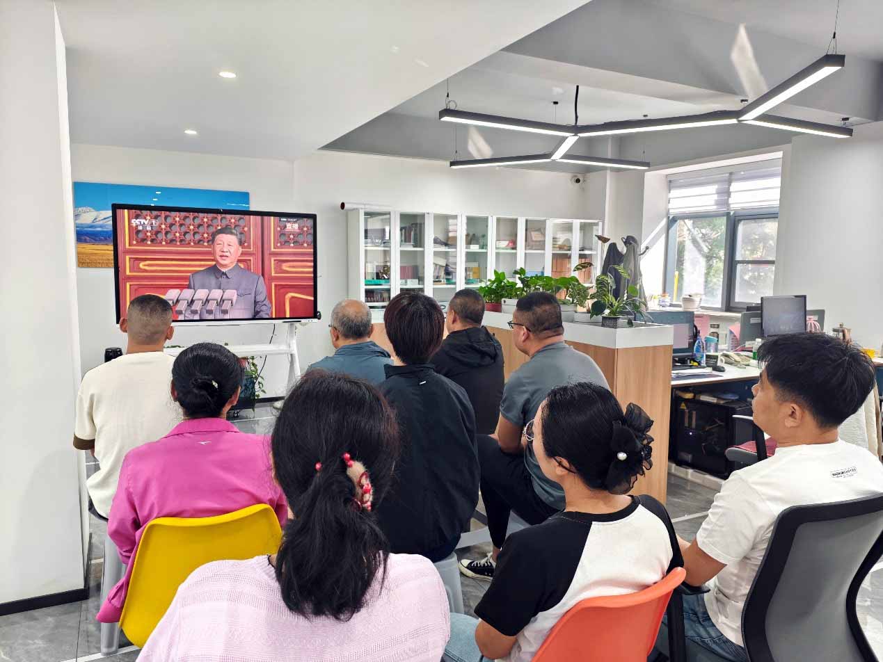 2025年9月3日在纪念中国人民抗日战争暨世界反法西斯战争胜利80周年之际,通达党委总部支部组织全体在职党员及先进青年在二楼办公室,集中观看了中央电视台在北京天安门广场举行的盛大阅兵仪式直播。